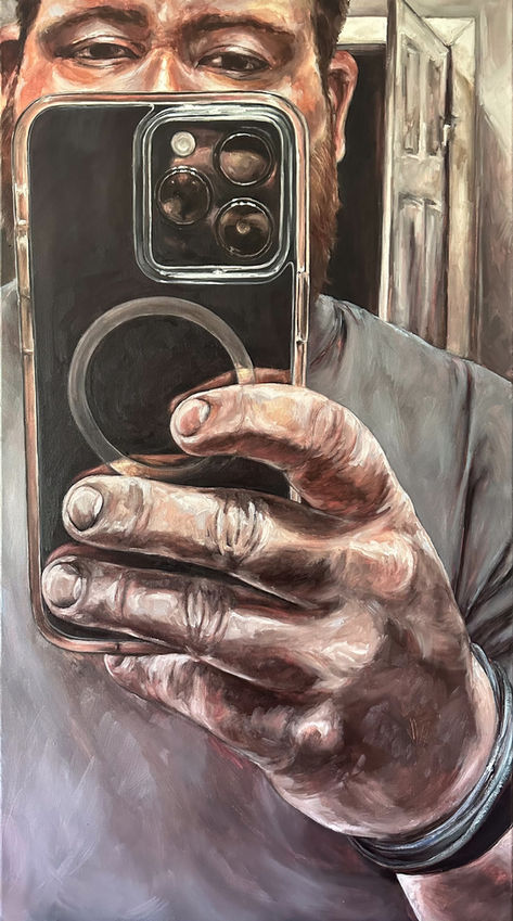 By removing these images from their original platforms and reimagining them within a Fine Art context, I explore how perception shifts when a temporary image becomes permanent. What happens when a “selfie”, meant to be scrolled past and briefly noticed in the space of a screen, is instead given the presence of a traditionally painted portrait?